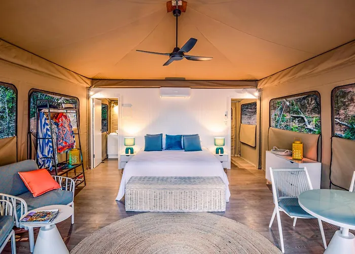 Innerhalb von 10 Minuten zu Fuß gelangt man ins Zentrum von Nelly Bay. Horseshoe Bay Lagoon Conservation Park liegt auch in ca. 10 Autominuten Entfernung von diesem King Safari Tent 3 Nelly Bay. Das Aparthotel befindet sich circa 1 km von der Alma Bay entfernt. Die nächste Bushaltestelle Sooning St at Kirk Street liegt in etwa 10 Gehminuten Entfernung.